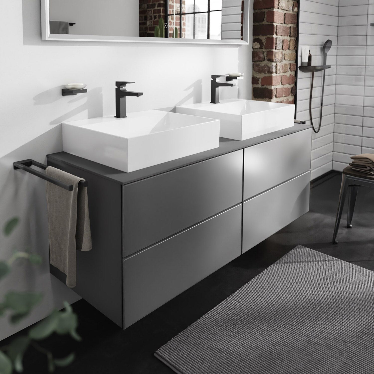 hansgrohe Xevolos E Waschtischunterschrank 157 x 55 cm mit 4 Schubkästen für Konsolen und 2 Aufsatzwaschtische