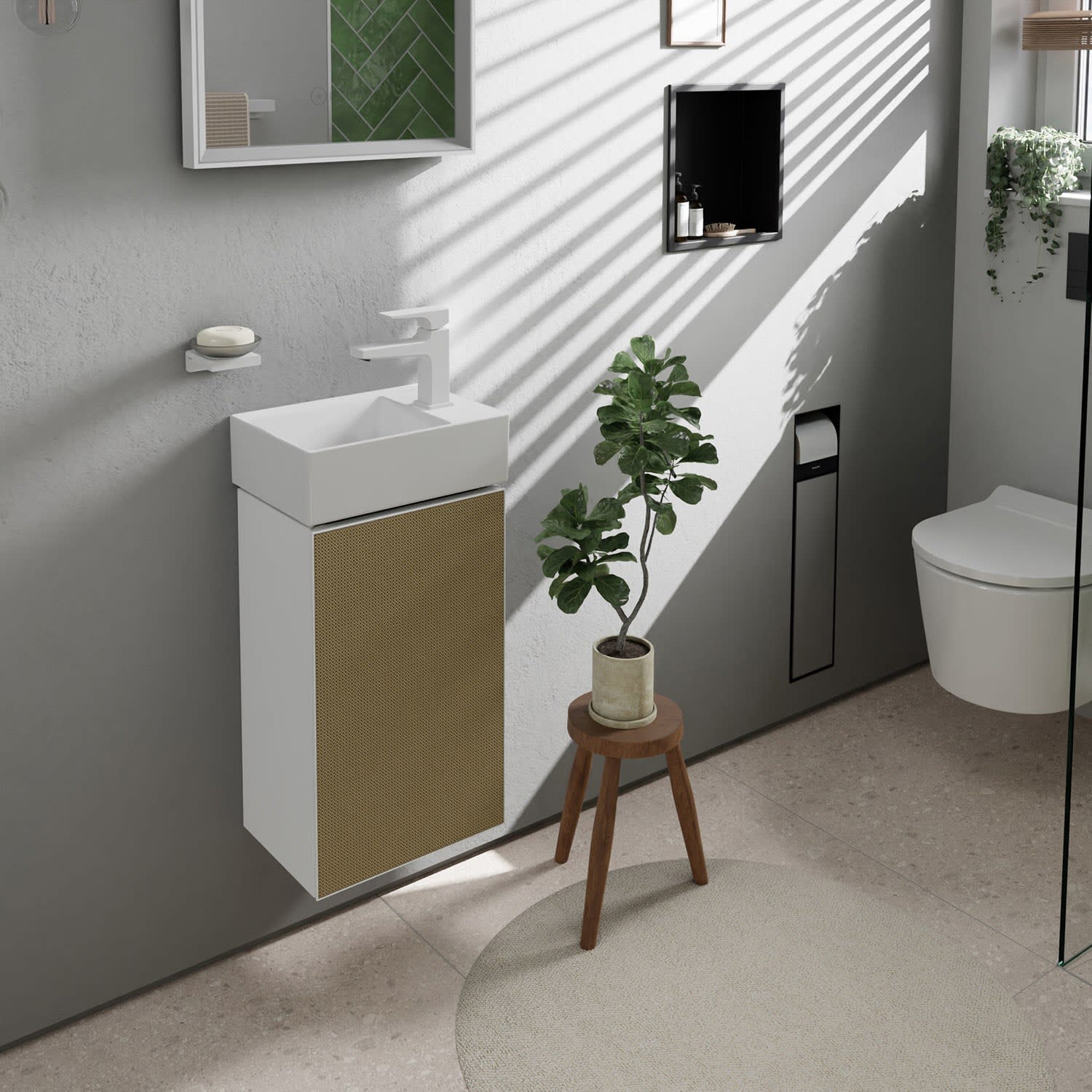 - Lieferumfang: Befestigungsmaterial, Montageanleitung, Waschtischunterschrank, Raumsparsiphon