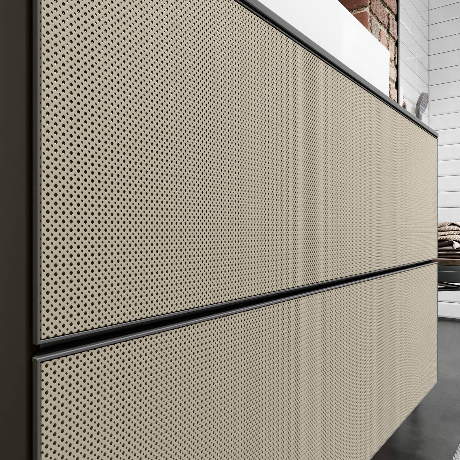- Hinweise: Aluminiumrahmen in Korpusfarbe ermöglicht einfaches Wechseln der Fronten
