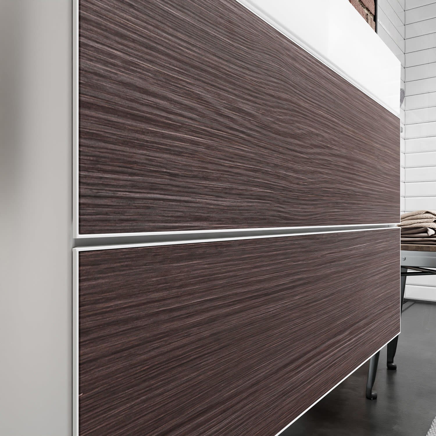 - Hinweise: Aluminiumrahmen in Korpusfarbe ermöglicht einfaches Wechseln der Fronten
