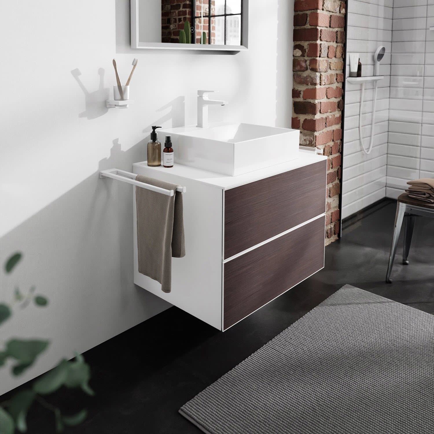 hansgrohe Xevolos E Waschtischunterschrank 78 x 55 mit 2 Schubkästen für Konsolen und Aufsatzwaschtisch