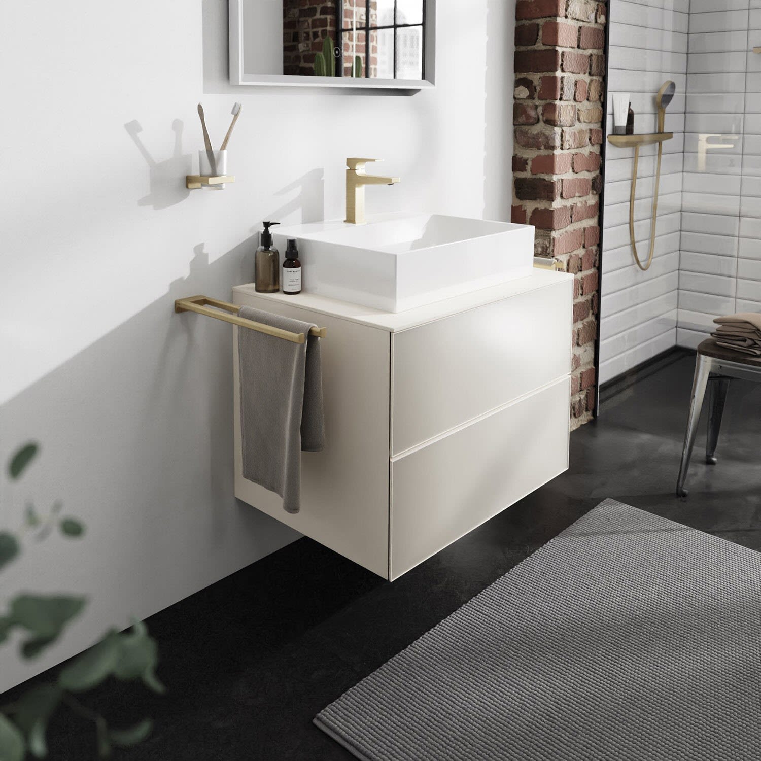 hansgrohe Xevolos E Waschtischunterschrank 78 x 55 mit 2 Schubkästen für Konsolen und Aufsatzwaschtisch