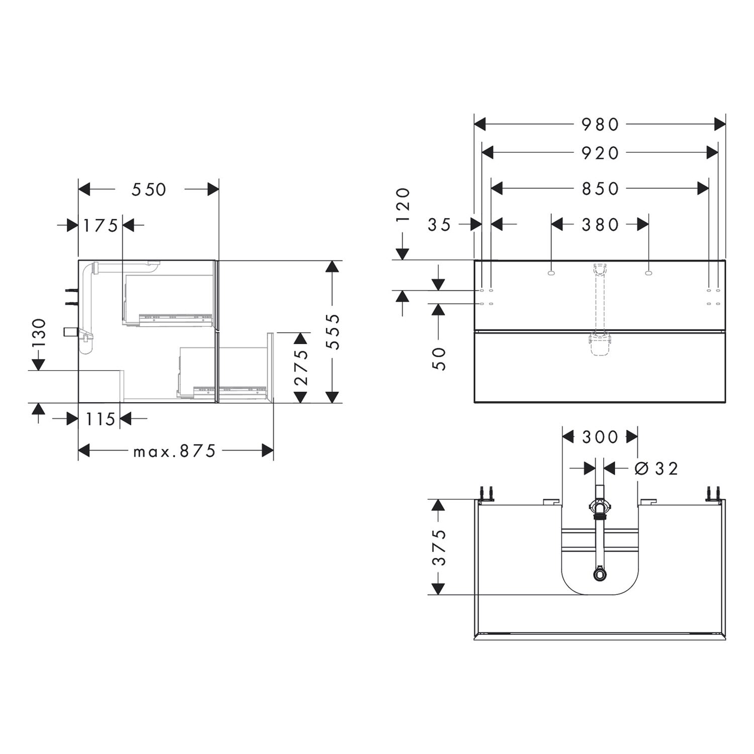 hansgrohe Xevolos E Waschtischunterschrank 98 x 55 cm mit 2 Schubkästen für Konsolen und Aufsatzwaschtisch
