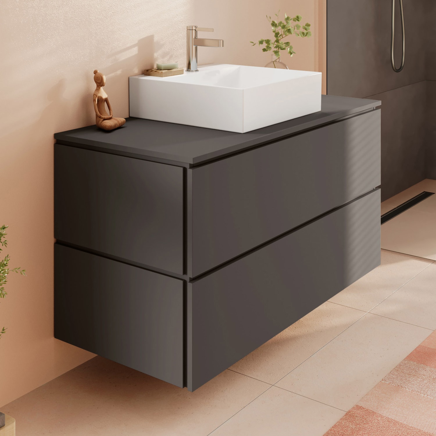 - Der Waschtischunterschrank und der Aufsatzwaschtisch (geschliffen) müssen separat bestellt werden.