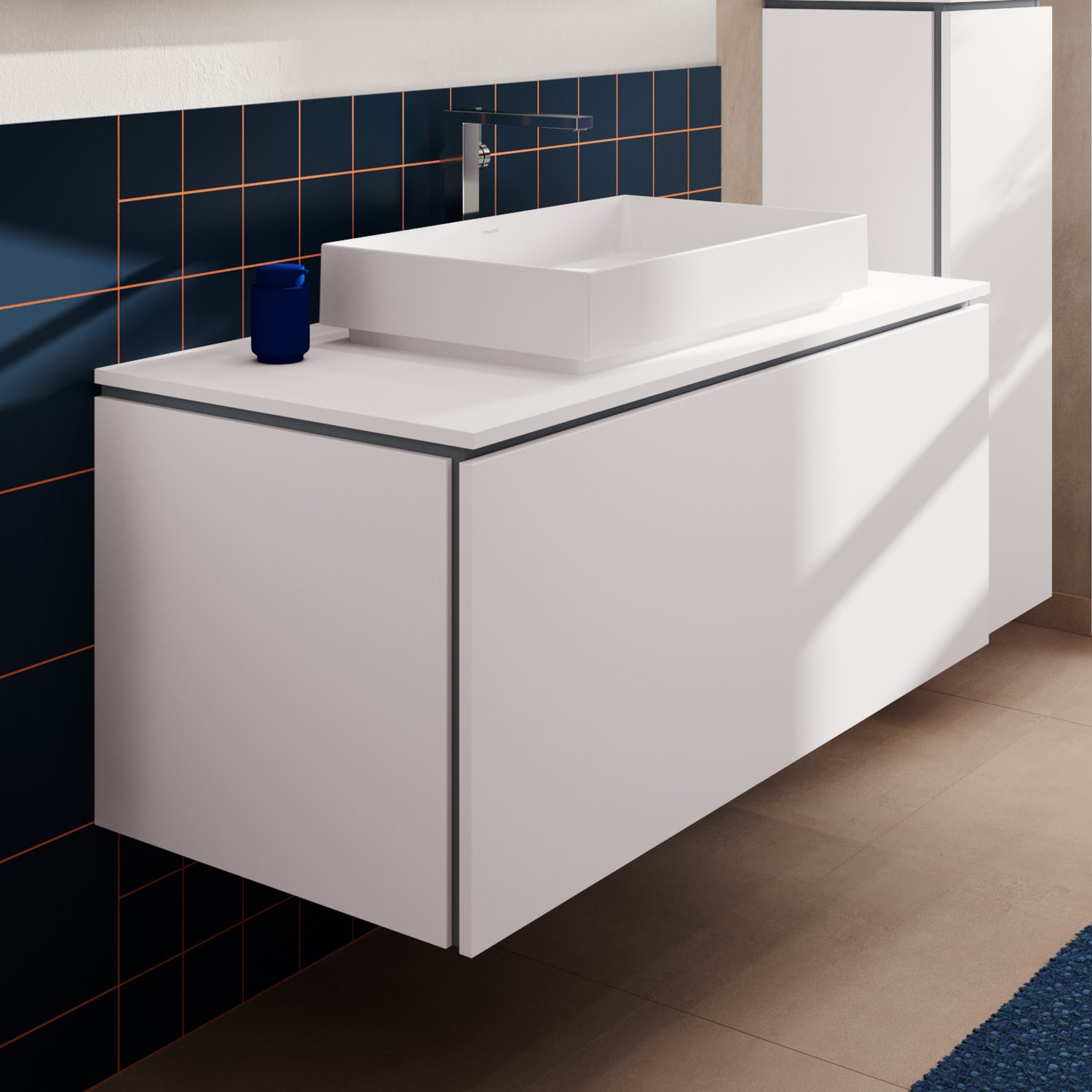Die Waschtisch-/Konsolenplatte selbst besteht aus einer hochdichten Dreischichtholzspanplatte und ist wie alle hansgrohe Badmöbel hervorragend für die feuchte Umgebung im Bad geeignet. Tipp: Mit der hansgrohe Möbelserie Xilesa E können Sie Ihr Bad ganz nach Ihren Vorstellungen einrichten. Denn es gibt die Waschtisch-/Konsolenplatte in verschiedenen Varianten – auf Wunsch auch für ein geschliffenes Waschbecken.