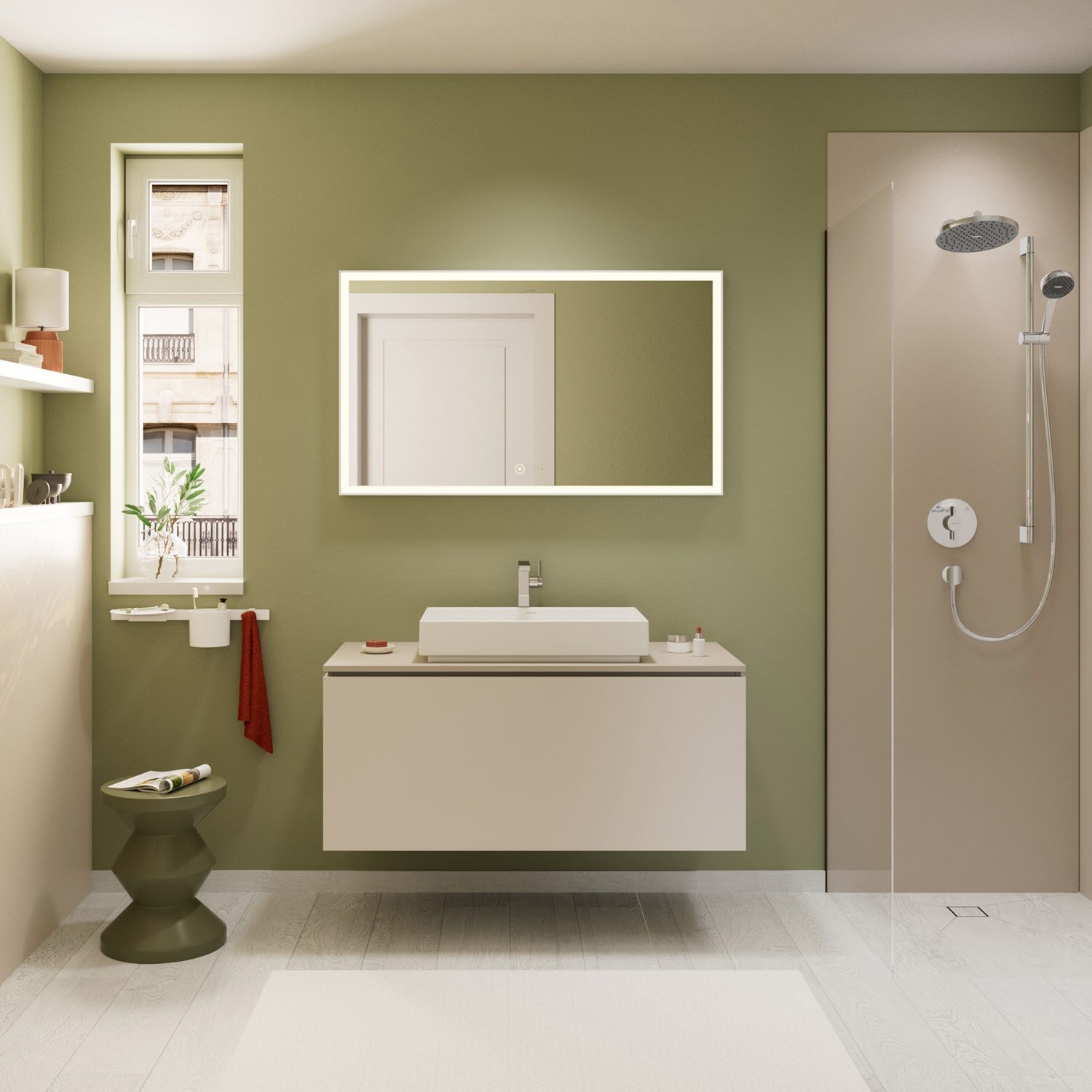 Die Waschtisch-/Konsolenplatte selbst besteht aus einer hochdichten Dreischichtholzspanplatte und ist wie alle hansgrohe Badmöbel hervorragend für die feuchte Umgebung im Bad geeignet. Tipp: Mit der hansgrohe Möbelserie Xilesa E können Sie Ihr Bad ganz nach Ihren Vorstellungen einrichten. Denn es gibt die Waschtisch-/Konsolenplatte in verschiedenen Varianten – auf Wunsch auch für ein geschliffenes Waschbecken.