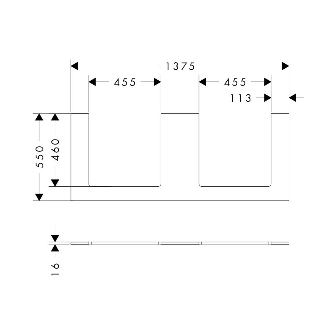 hansgrohe Xilesa E Konsole 137,5 x 55 cm mit 2 Ausschnitten eckig links und rechts für Aufsatzwaschtische geschliffen