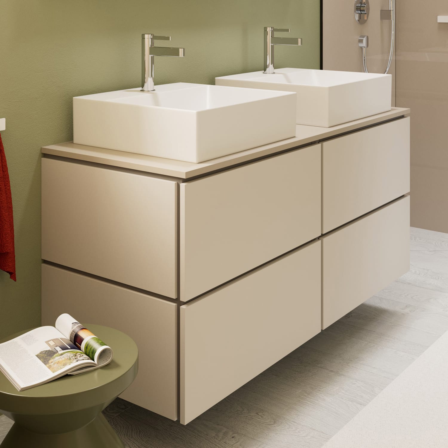 Entdecken Sie ein außergewöhnliches Design-Highlight für Ihr Bad, das nicht die Welt kostet. Mit Badmöbeln der hansgrohe Serie Xilesa E gestalten Sie im Handumdrehen Ihre persönliche Wohlfühloase. Die angebotene Waschtisch-/Konsolenplatte wird mit einem passenden Unterschrank und zwei geschliffenen Aufsatzwaschtischen von hansgrohe kombiniert.