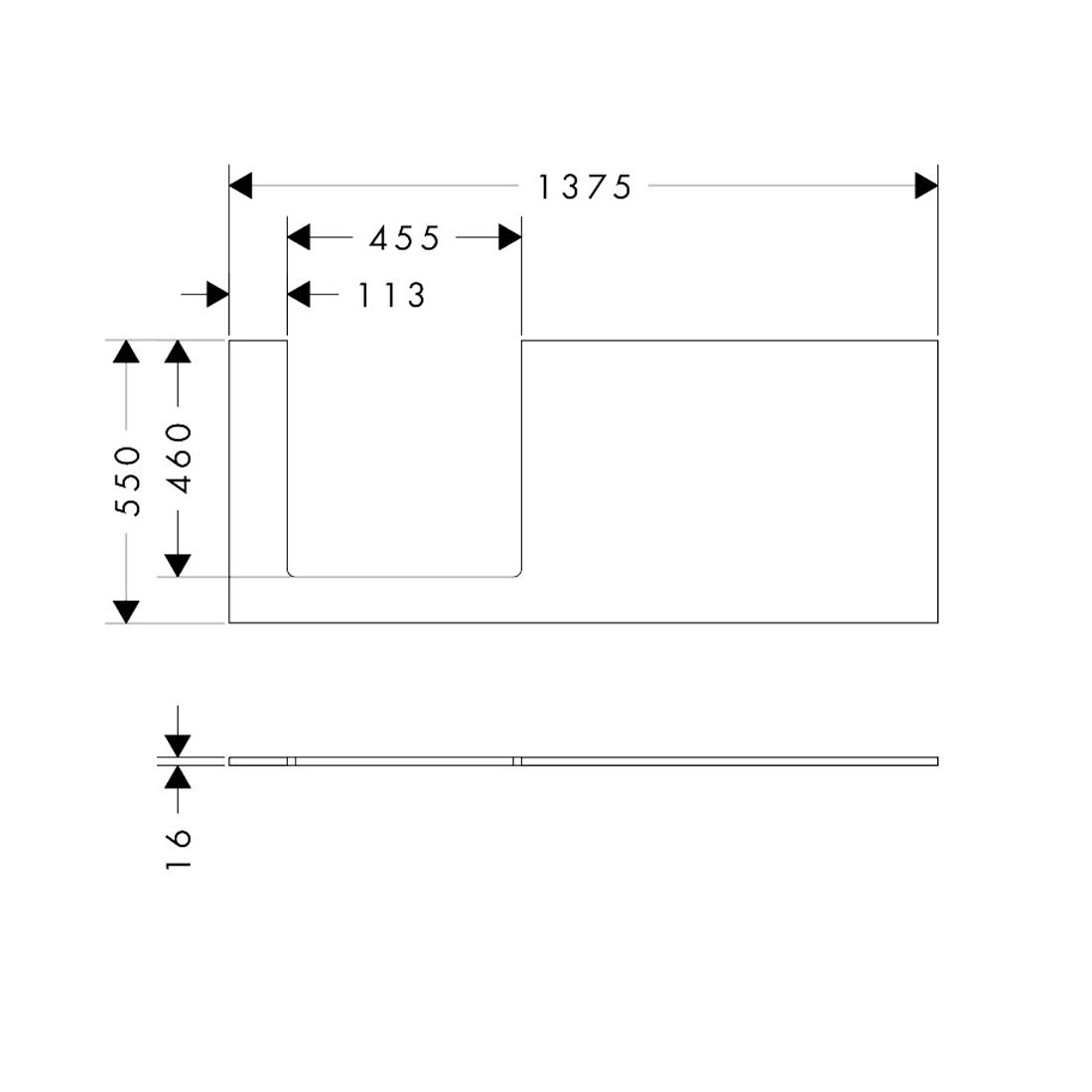 hansgrohe Xilesa E Konsole 137,5 x 55 cm mit Ausschnitt eckig links für Aufsatzwaschtisch geschliffen