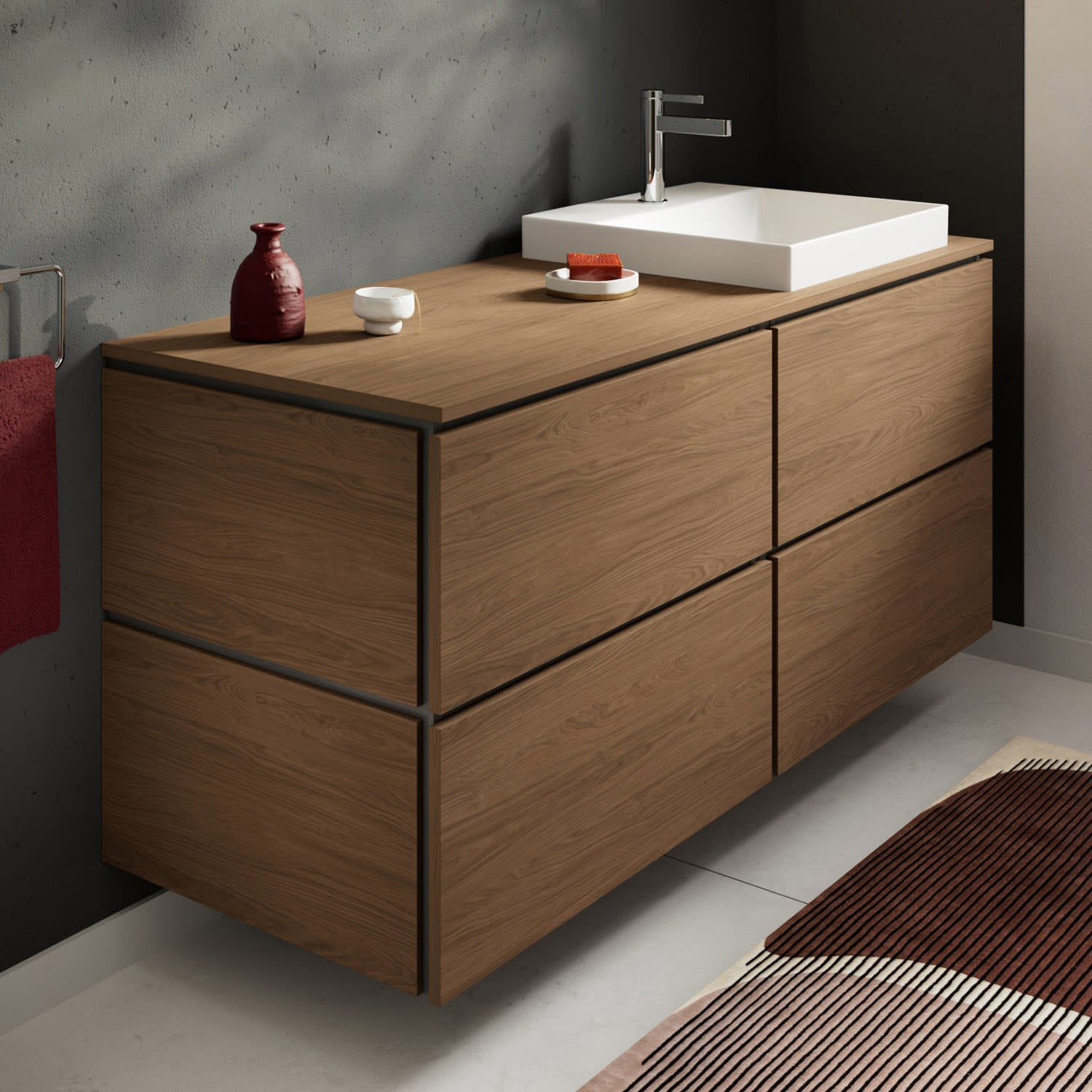 Die Waschtisch-/Konsolenplatte selbst besteht aus einer hochdichten Dreischichtholzspanplatte und ist wie alle hansgrohe Badmöbel hervorragend für die feuchte Umgebung im Bad geeignet. Tipp: Mit der hansgrohe Möbelserie Xilesa E können Sie Ihr Bad ganz nach Ihren Vorstellungen einrichten. Denn es gibt die Waschtisch-/Konsolenplatte in verschiedenen Varianten – auf Wunsch auch für eine ungeschliffene Waschschüssel, mit zwei Ausschnitten oder mit einem Ausschnitt auf der linken Seite.