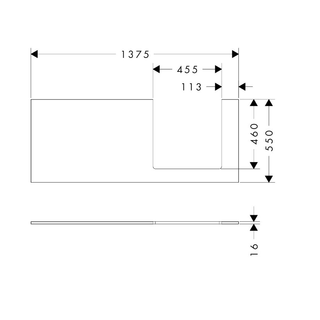 hansgrohe Xilesa E Konsole 137,5 x 55 cm mit Ausschnitt eckig rechts für Aufsatzwaschtisch geschliffen