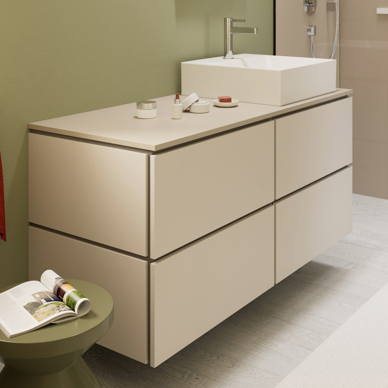 - Der Waschtischunterschrank und der Aufsatzwaschtisch (geschliffen) müssen separat bestellt werden.