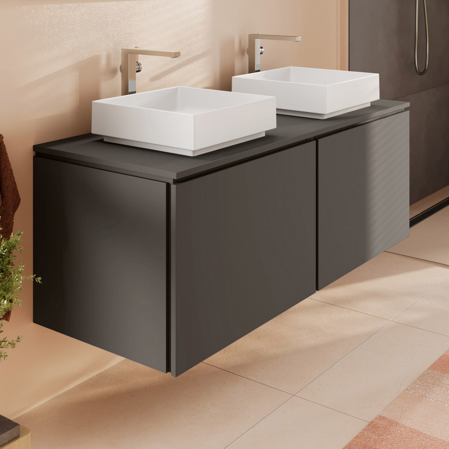 Entdecken Sie ein außergewöhnliches Design-Highlight für Ihr Bad, das nicht die Welt kostet. Mit Badmöbeln der hansgrohe Serie Xilesa E gestalten Sie im Handumdrehen Ihre persönliche Wohlfühloase. Die angebotene Waschtisch-/Konsolenplatte wird mit einem passenden Unterschrank und zwei Aufsatzwaschtischen kombiniert.