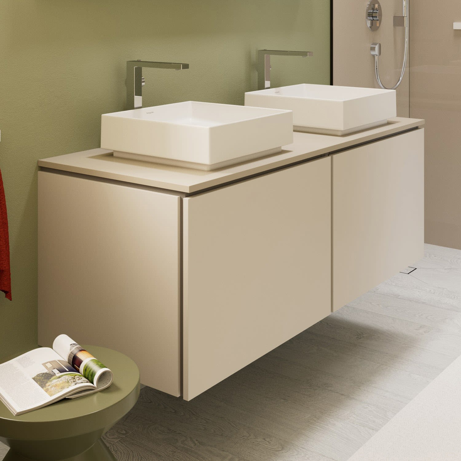 Entdecken Sie ein außergewöhnliches Design-Highlight für Ihr Bad, das nicht die Welt kostet. Mit Badmöbeln der hansgrohe Serie Xilesa E gestalten Sie im Handumdrehen Ihre persönliche Wohlfühloase. Die angebotene Waschtisch-/Konsolenplatte wird mit einem passenden Unterschrank und zwei Aufsatzwaschtischen kombiniert.