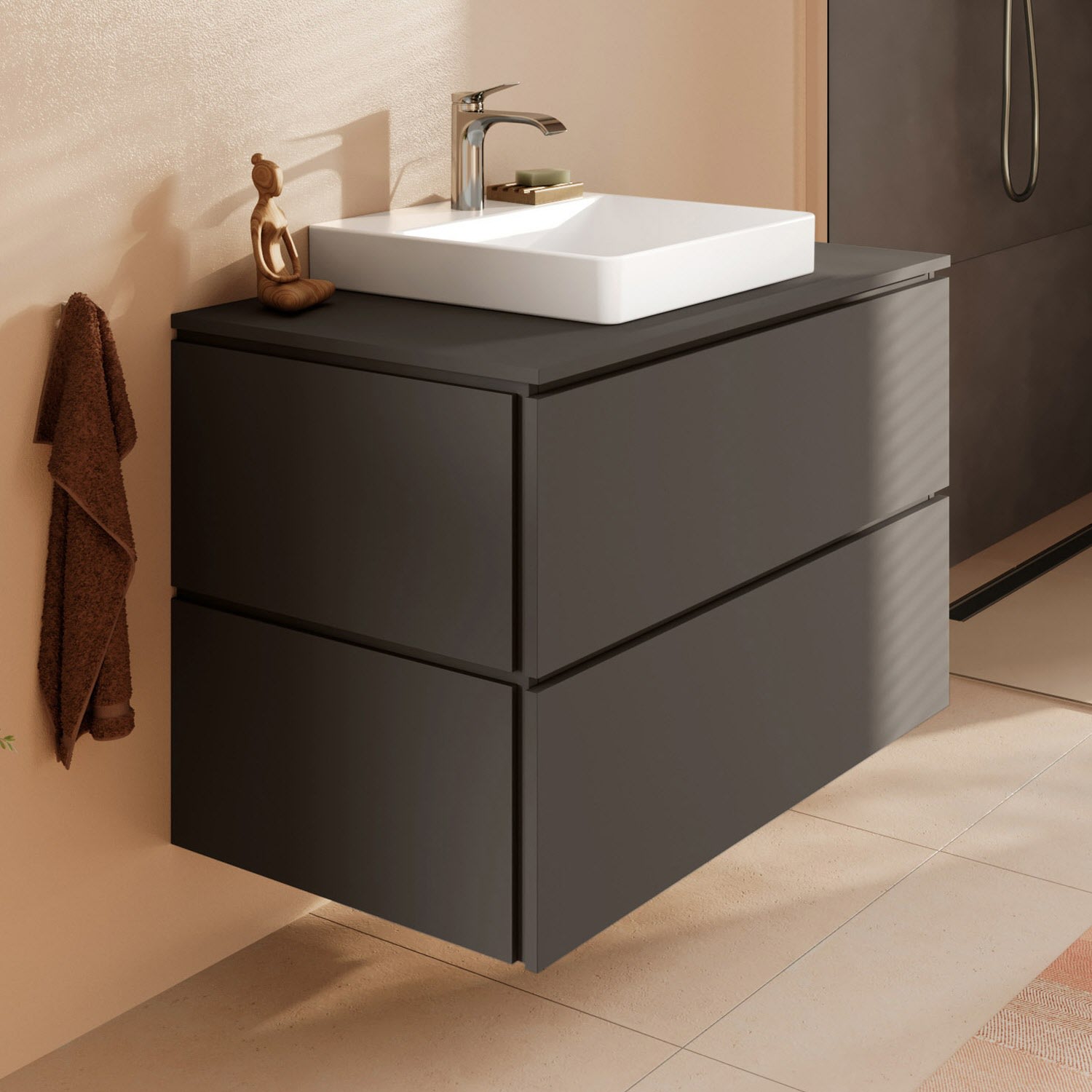Die Waschtisch-/Konsolenplatte selbst besteht aus einer hochdichten Dreischichtholzspanplatte und ist wie alle hansgrohe Badmöbel hervorragend für die feuchte Umgebung im Bad geeignet. Tipp: Mit der hansgrohe Möbelserie Xilesa E können Sie Ihr Bad ganz nach Ihren Vorstellungen einrichten. Denn es gibt die Waschtisch-/Konsolenplatte in verschiedenen Varianten – auf Wunsch auch für eine ungeschliffene Waschschüssel.