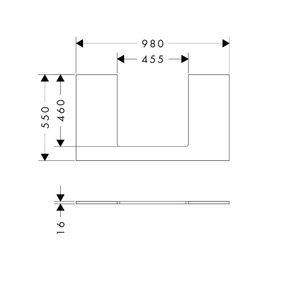hansgrohe Xilesa E Konsole 98 x 55 cm mit Ausschnitt eckig mittig für Aufsatzwaschtisch geschliffen