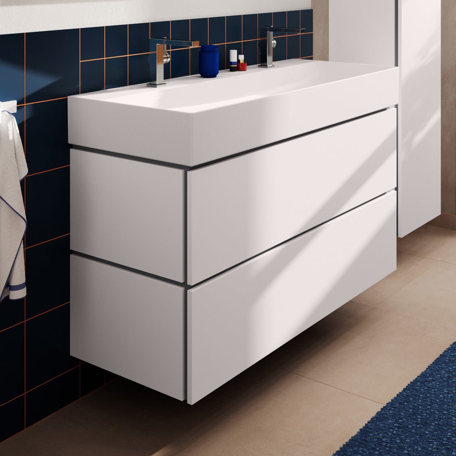 hansgrohe Xilesa E Waschtischunterschrank 118 cm mit 2 Auszügen und Push Open Funktion