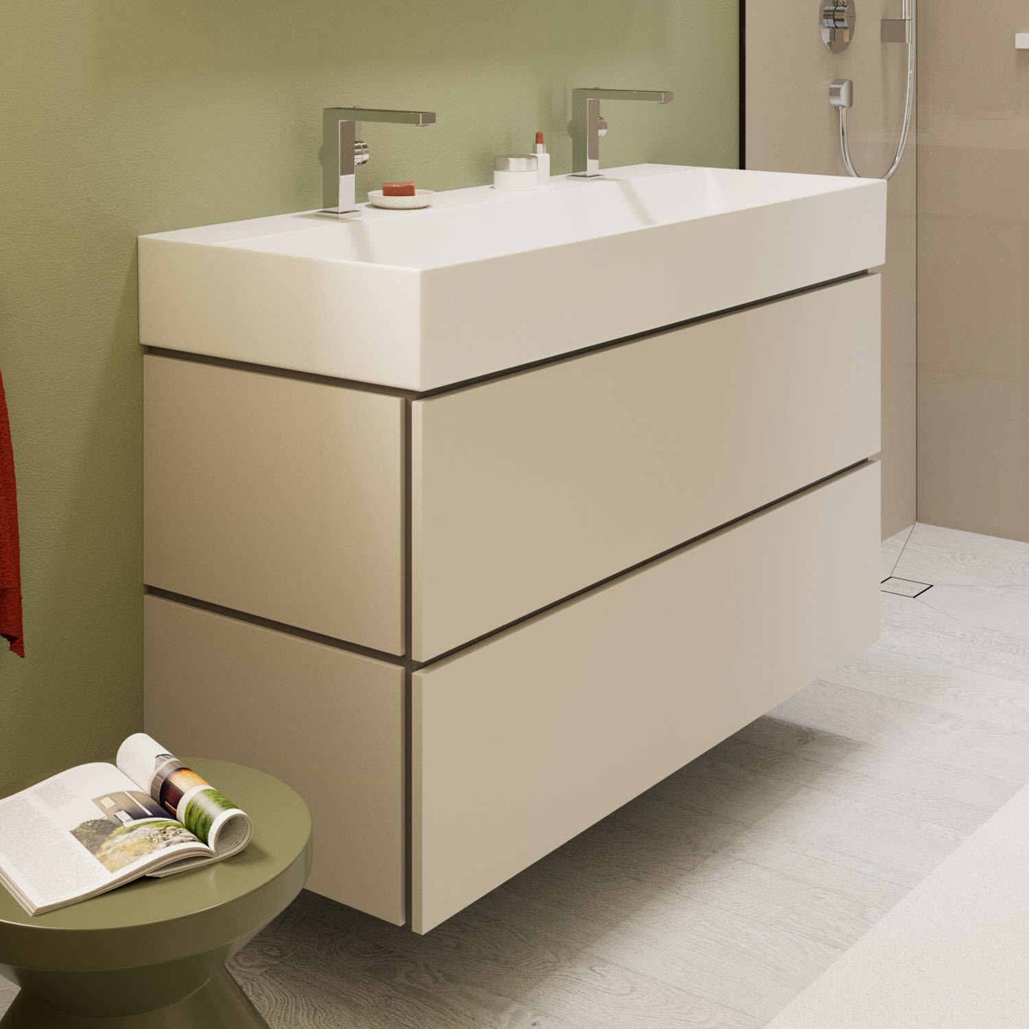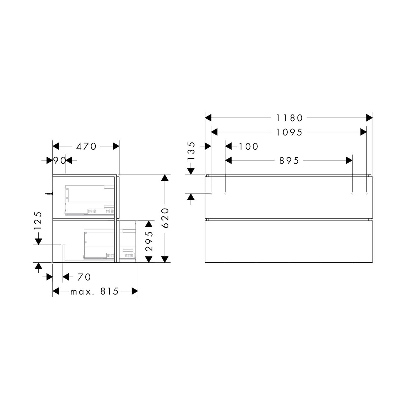 hansgrohe Xilesa E Waschtischunterschrank 118 cm mit 2 Auszügen und Push Open Funktion