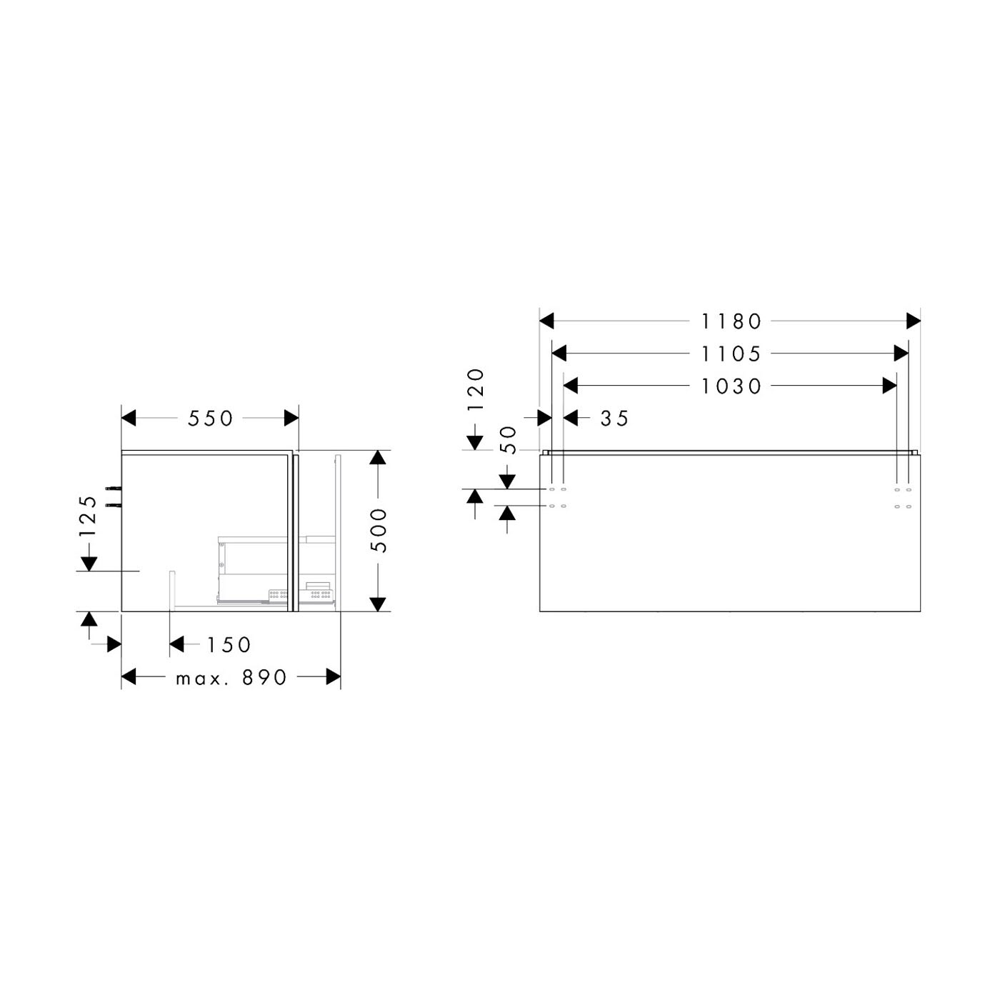 hansgrohe Xilesa E Waschtischunterschrank 118 cm mit 1 Auszug für Konsole mit Ausschnitt mittig