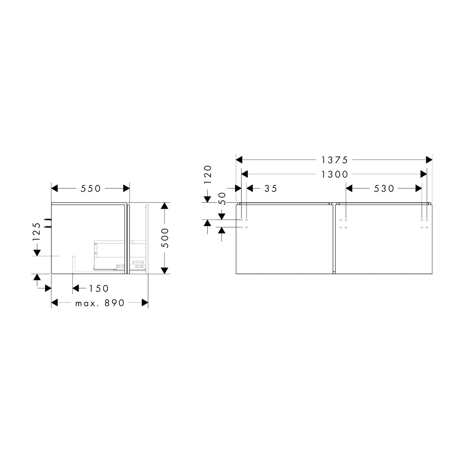 hansgrohe Xilesa E Waschtischunterschrank 137,5 cm mit 2 Auszügen für Konsole mit Ausschnitt
