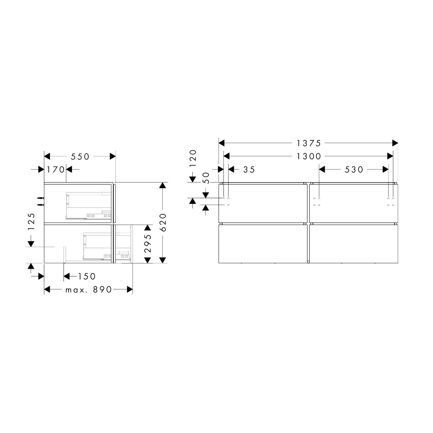 hansgrohe Xilesa E Waschtischunterschrank 137,5 cm mit 4 Auszügen und Push Open Funktion für Konsole mit Ausschnitt