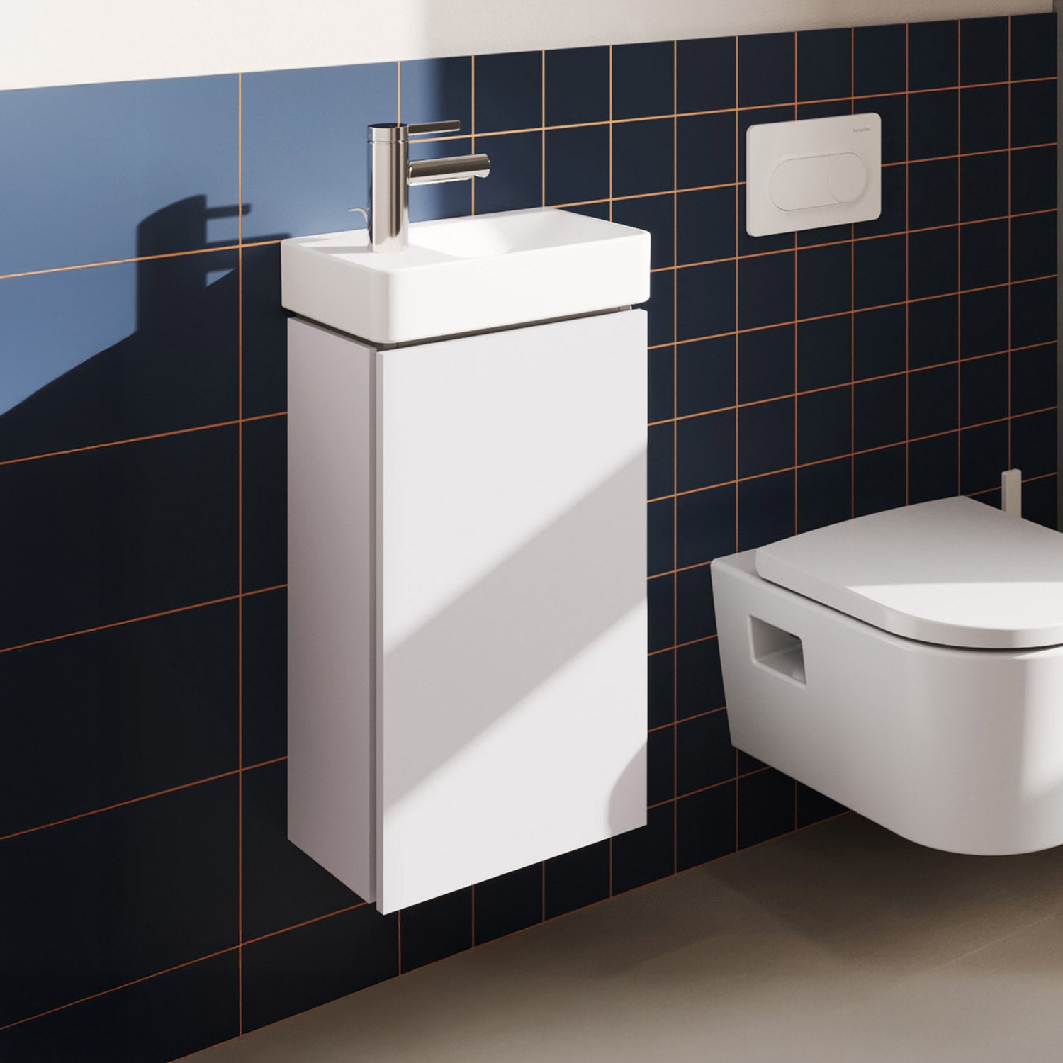 hansgrohe Xilesa E verbindet Design und Funktion zu einem komfortablen und eindrucksvollen Gesamterlebnis. So lässt sich die Türe über die elegante Schattenfuge einfach öffnen. Auf einen störenden Griff kann verzichtet werden. Der kompakte Unterschrank für schmal geschnittene Bäder bietet zudem maximalen Stauraum, da er ohne Siphonausschnitt auskommt – ein Raumsparsiphon macht's möglich.
