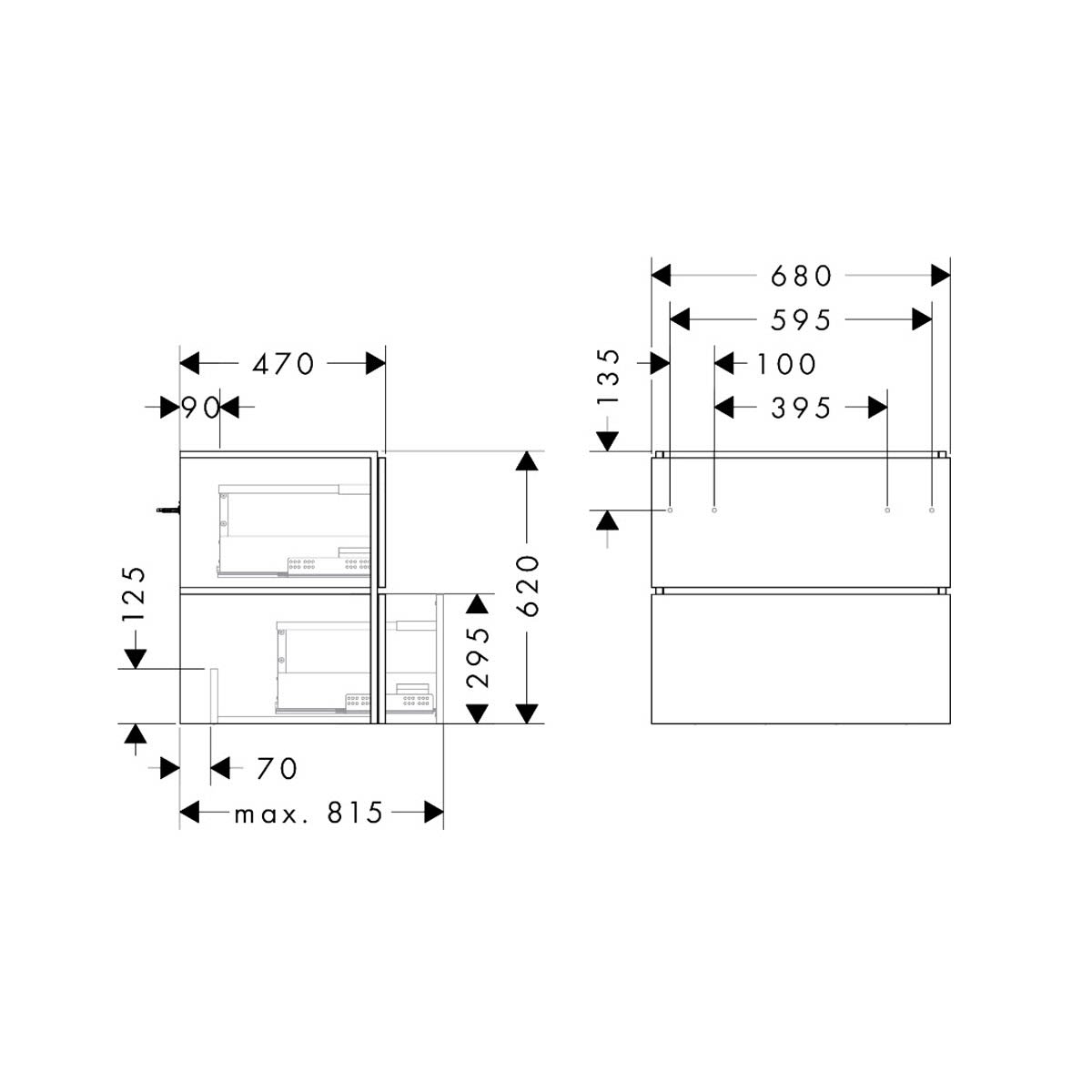 hansgrohe Xilesa E Waschtischunterschrank 68 cm mit 2 Auszügen