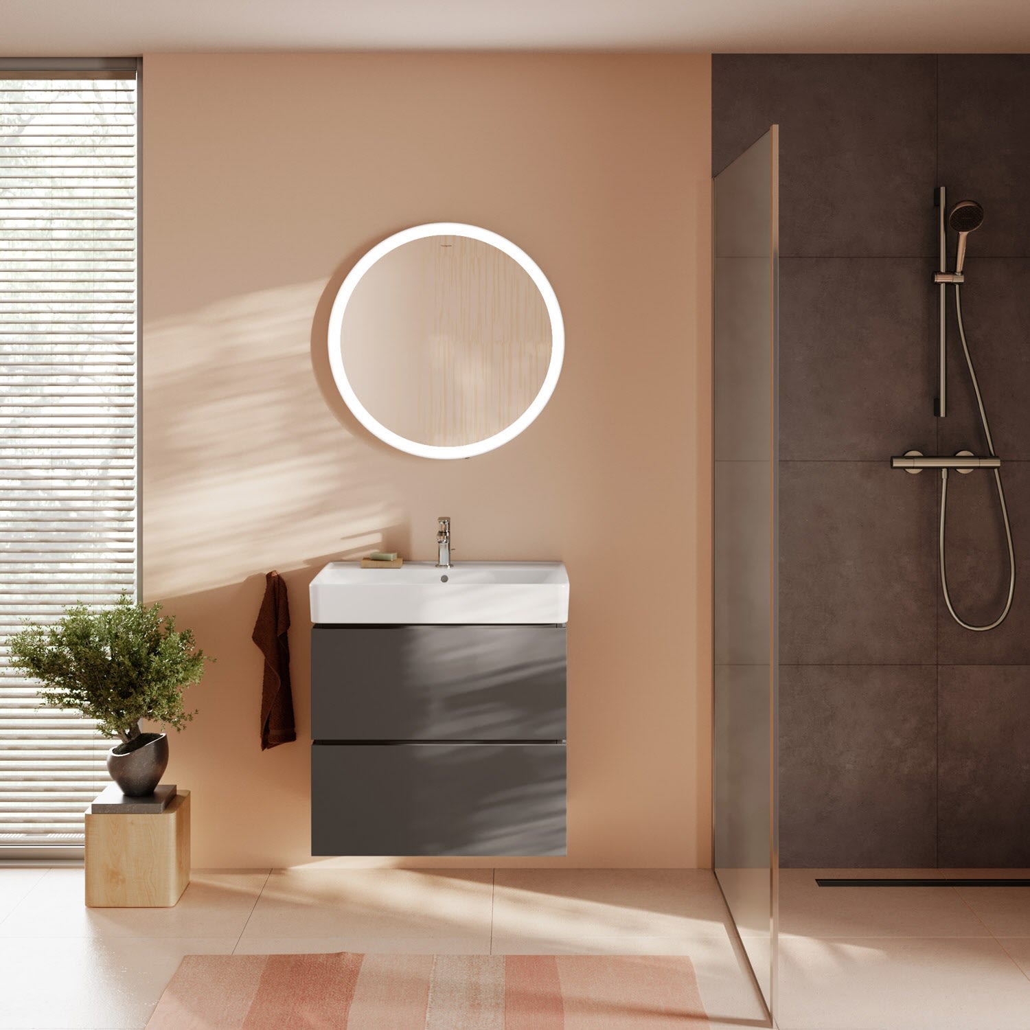 Stellen Sie Ihr Traumbad mit weiteren Elementen von hansgrohe zusammen. So passen zum Waschtischunterschrank verschiedene Waschbeckenlinien von hansgrohe.
