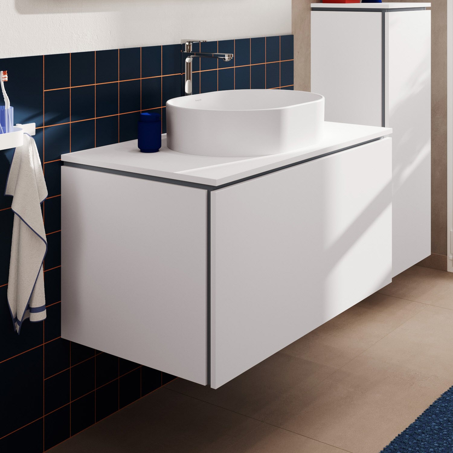 Stellen Sie Ihr Traumbad mit weiteren Elementen von hansgrohe zusammen. So passen zum Waschtischunterschrank verschiedene Aufsatzwaschbecken von hansgrohe.