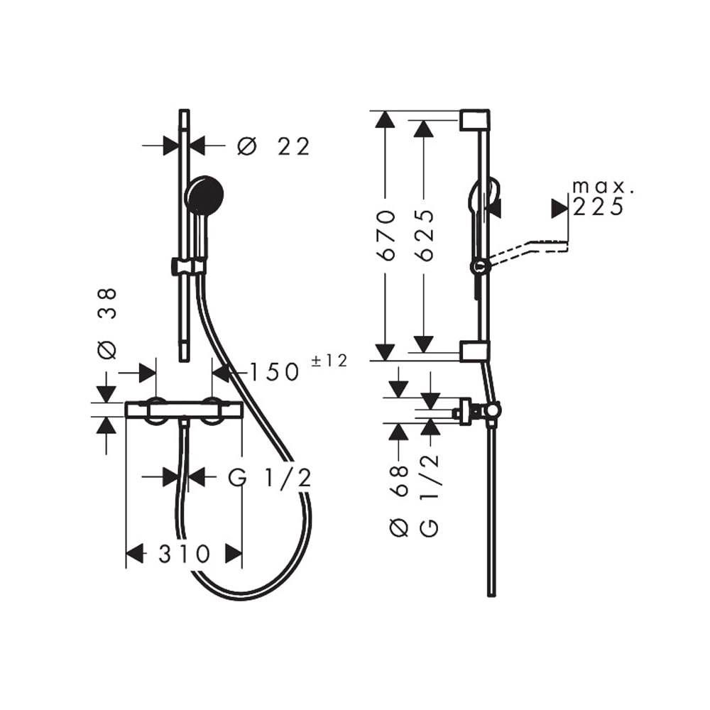 hansgrohe Activera Select S Brausesystem Aufputz 95 2jet EcoSmart mit Ecostat Fine und Brausestange 65 cm