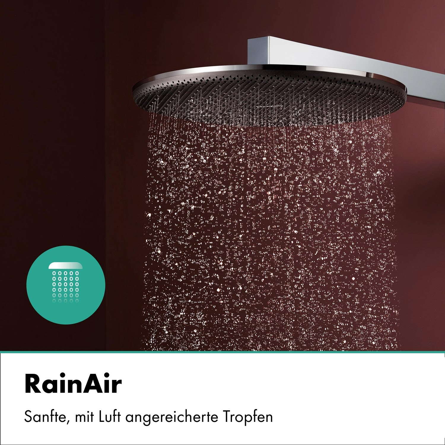 - Wahlmöglichkeit: Verwöhnt ab Werk mit RainAir. Ein Wechsel zu hansgrohe PowderRain ist jederzeit möglich