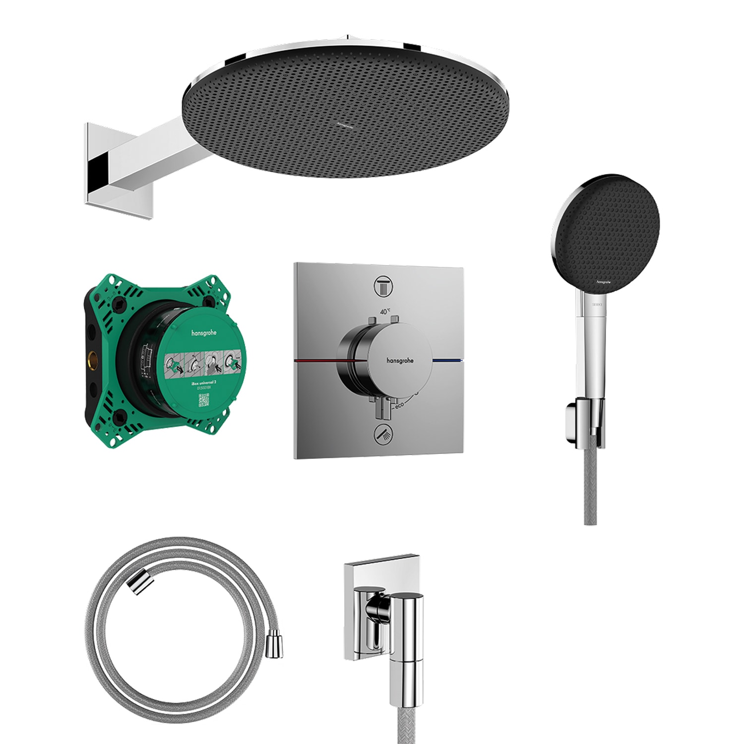 - Komplettpaket: Raindance Alive Kopf-/Handbrause, Wandanschluss, Brausehalter, Designflex-Schlauch, Thermostat und Grundkörper