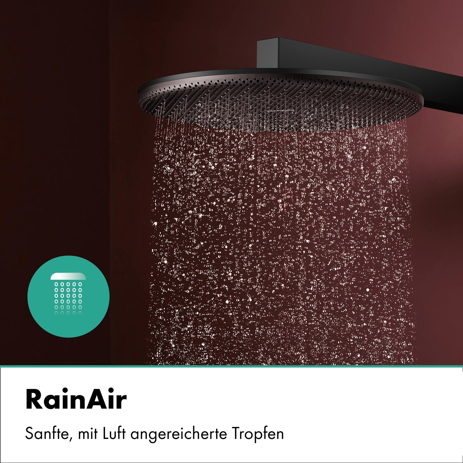 - Wahlmöglichkeit: Verwöhnt ab Werk mit RainAir. Ein Wechsel zu hansgrohe PowderRain ist jederzeit möglich