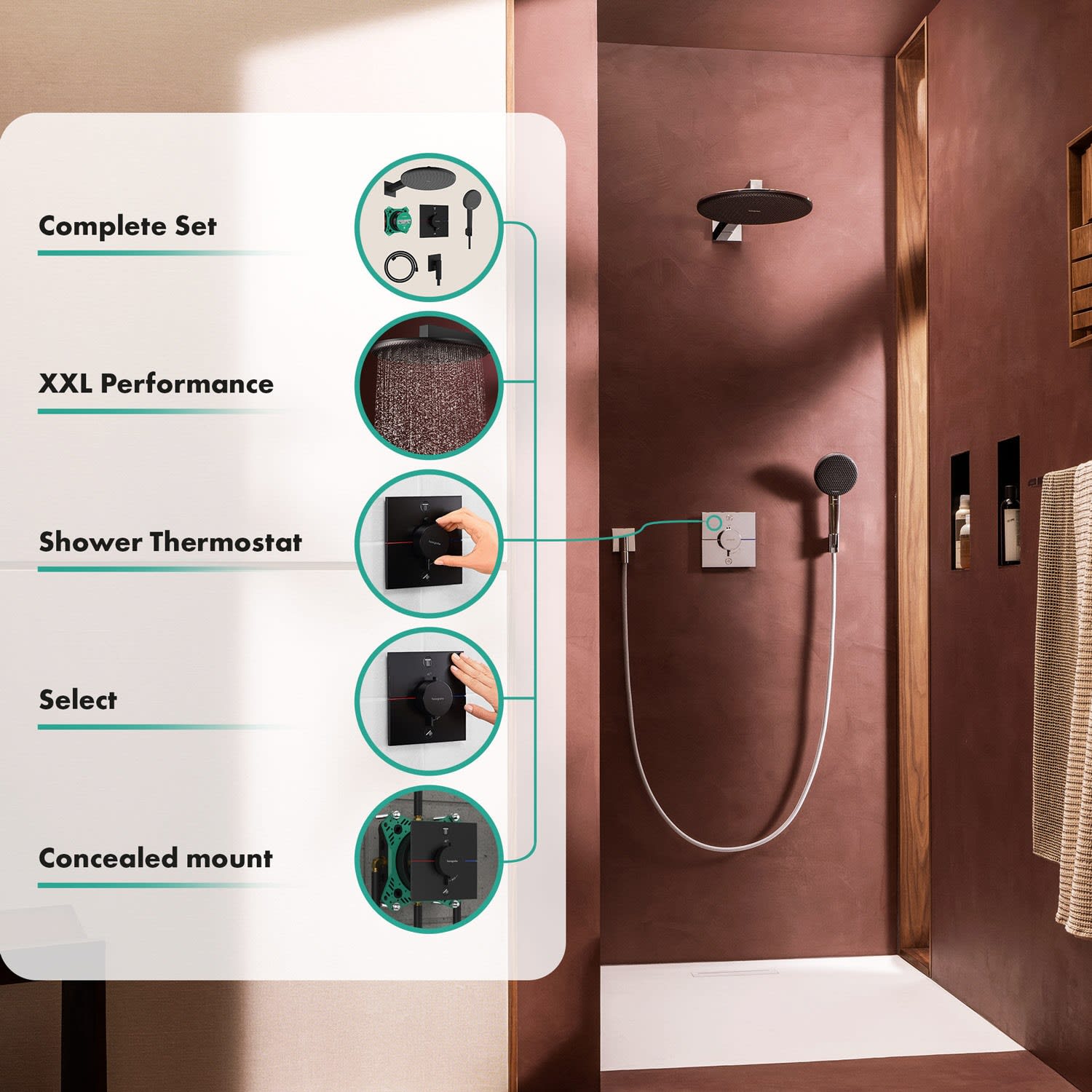 - Unbeschwertes Duscherlebnis: Das Unterputzthermostat wird bequem auf Tastendruck gesteuert (Select)