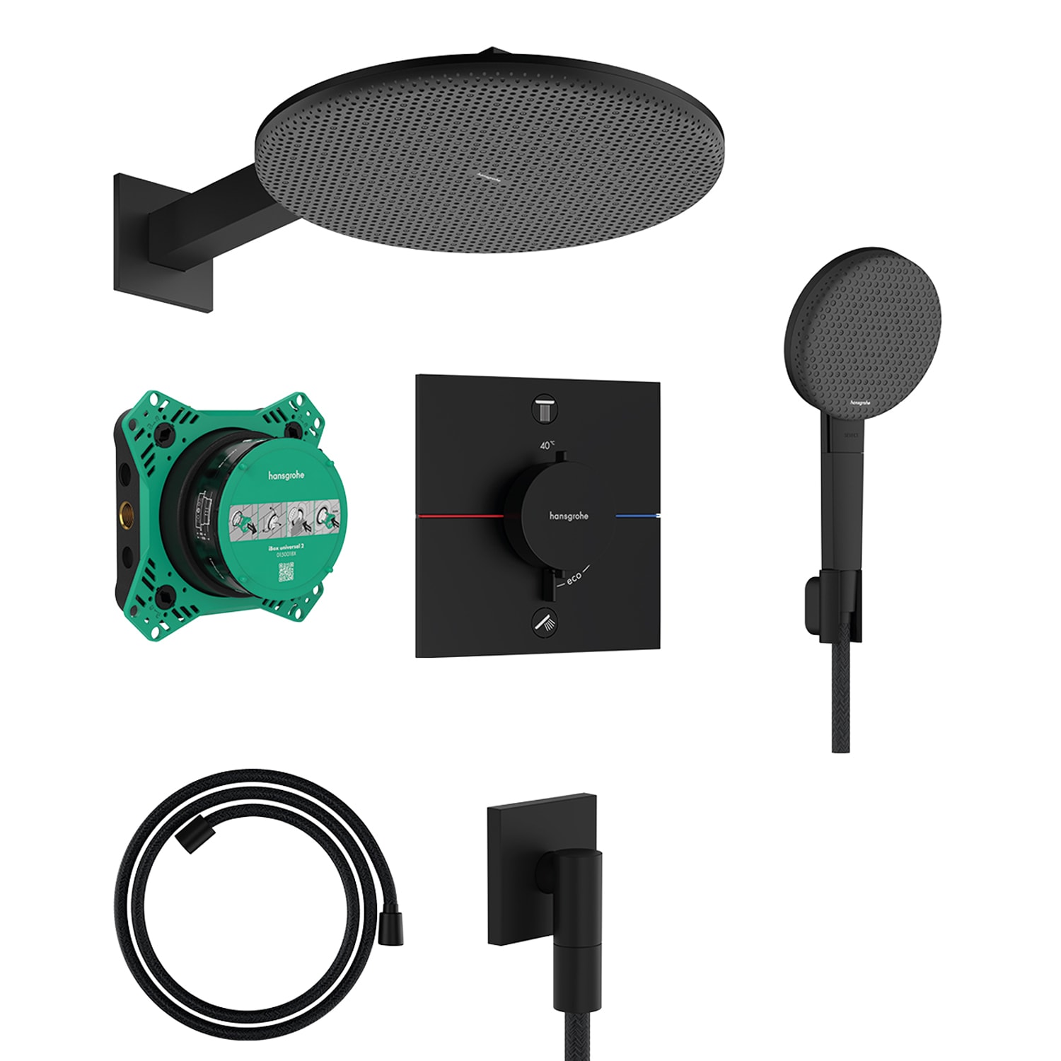 - Komplettpaket: Raindance Alive Kopf-/Handbrause, Wandanschluss, Brausehalter, Designflex-Schlauch, Thermostat und Grundkörper