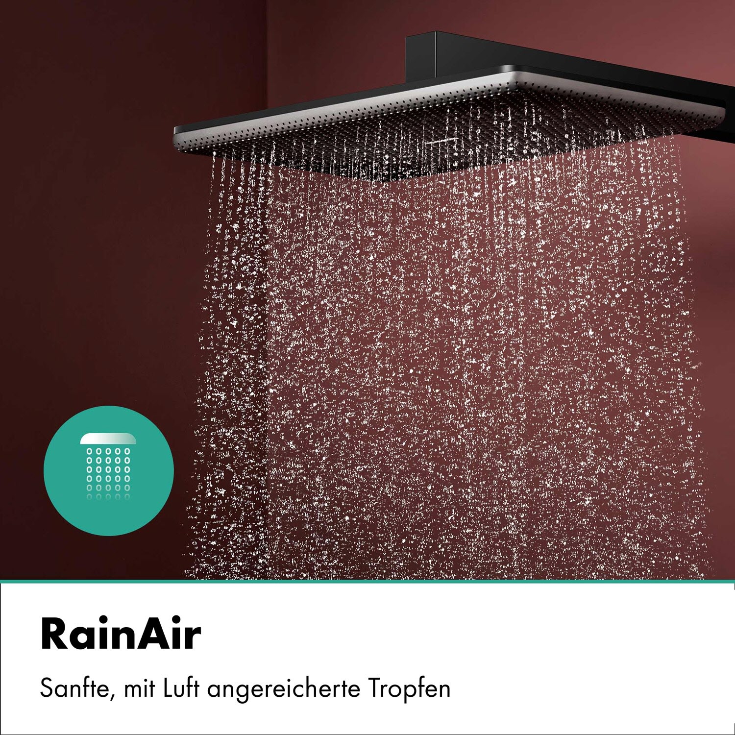 - Wahlmöglichkeit: Verwöhnt ab Werk mit RainAir. Ein Wechsel zu hansgrohe PowderRain ist jederzeit möglich