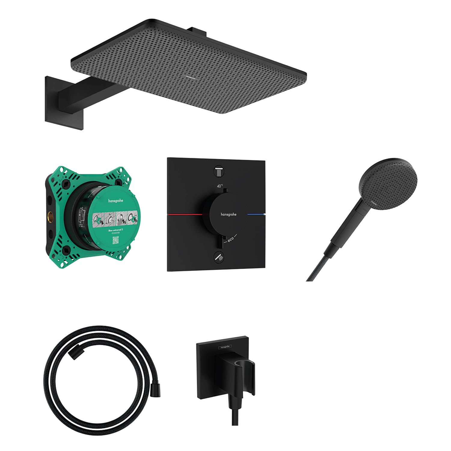 - Komplettpaket: Raindance Alive Kopf-/Handbrause, Wandanschluss, Brausehalter, Designflex-Schlauch, Thermostat und Grundkörper