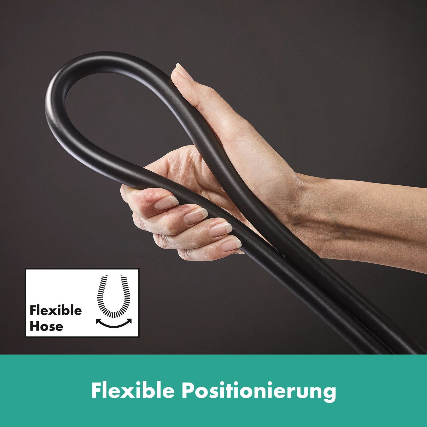 - Qualität von hansgrohe: ein ausspülbares Sieb fängt Schmutz auf, bevor er in den Duschkopf gelangen kann