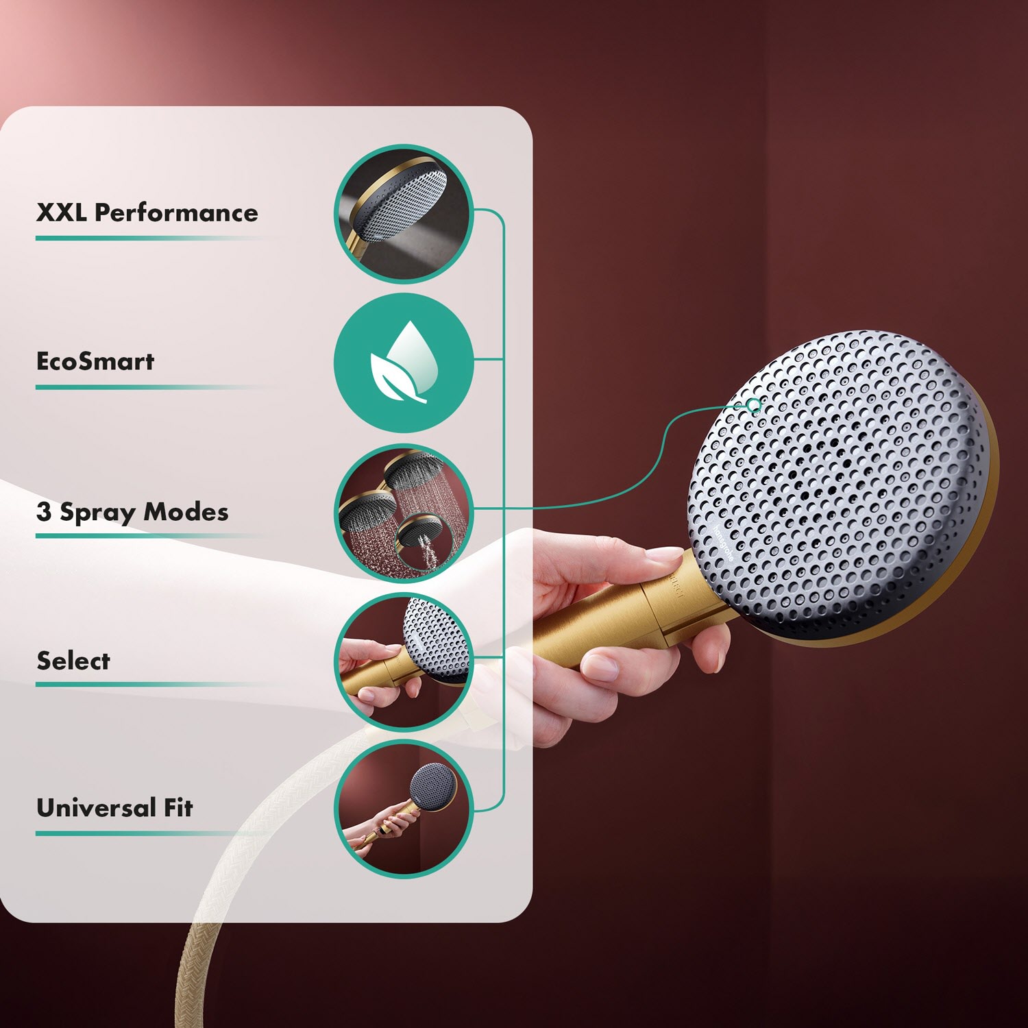 - *EcoSmart: Benötigt dank eines flexiblen Durchflussbegrenzers max. 8 l/min – ohne Einbußen beim Duschkomfort