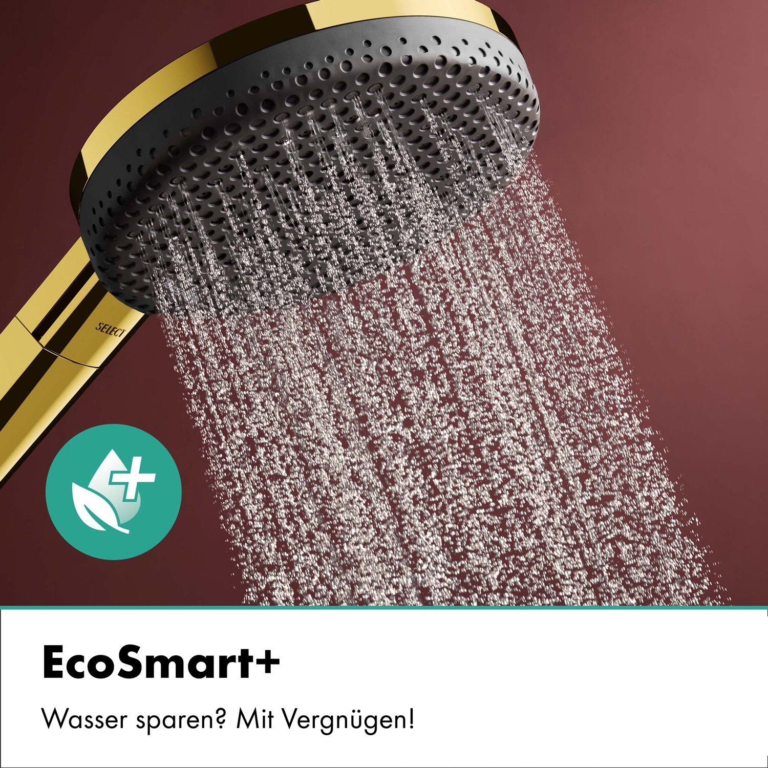 - *Die EcoSmart+ Technologie von hansgrohe verringert den Wasserverbrauch mit einem flexiblen Durchflussbegrenzer auf max. 6 l/min (3 bar)