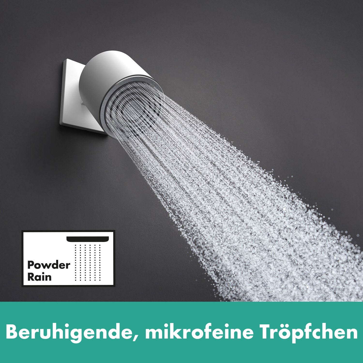 - PowderRain: die neue Strahlart umhüllt mit tausenden mikrofeinen Tropfen wie ein hauchzarter Sommerregen