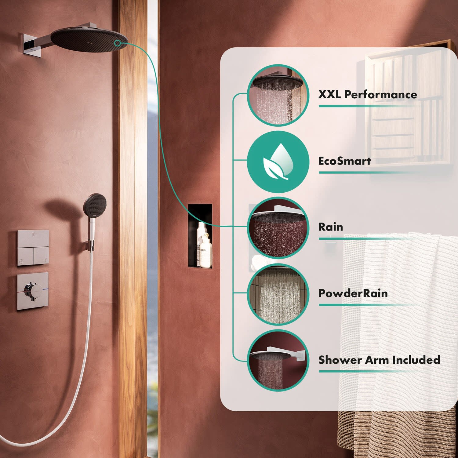 - Mit zwei traumhaften Strahlarten: hansgrohe Rain und PowderRain
