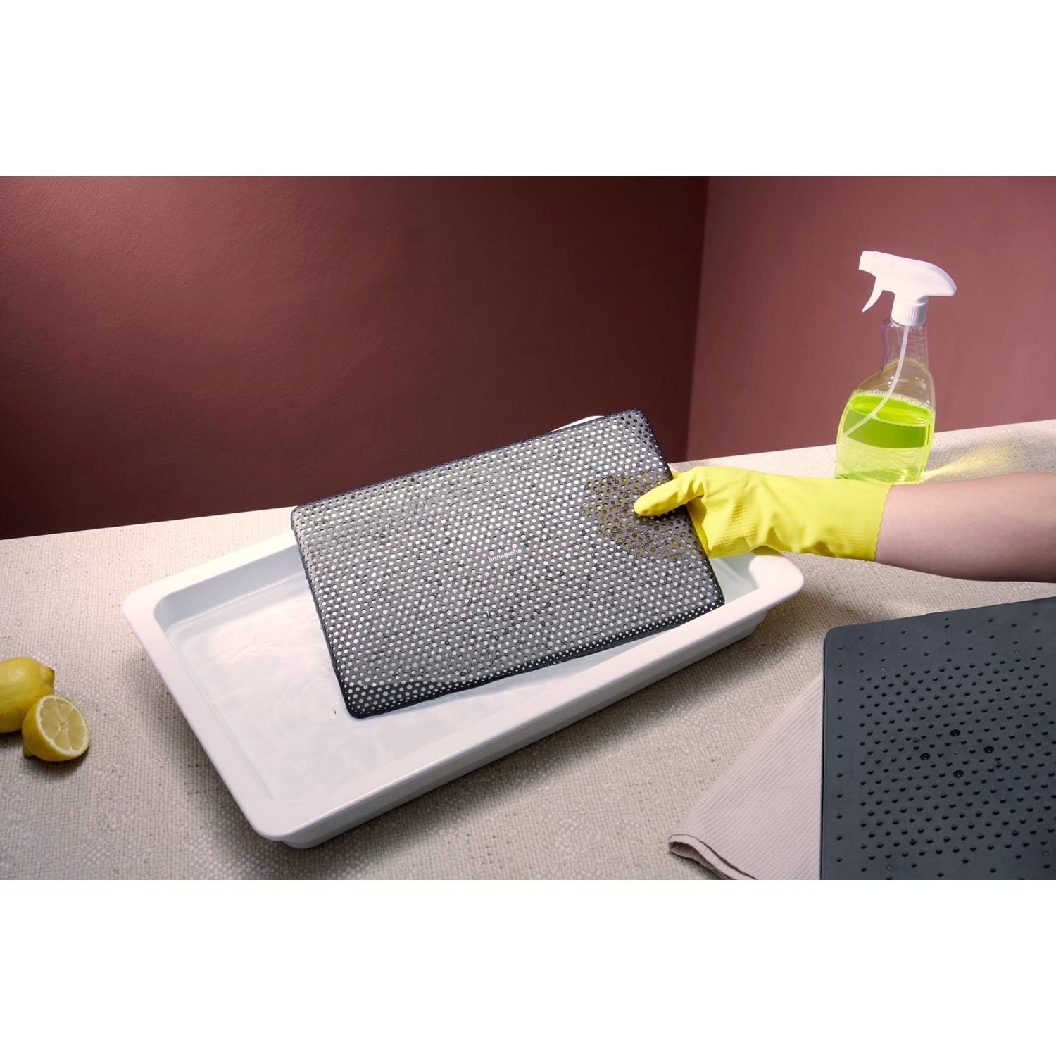 - Auch für kalkhaltiges Wasser geeignet: Die eloxierte Abdeckung lässt sich leicht abnehmen und reinigen. Darunter verborgene, flexible Düsen werden durch Abwischen von Rückständen befreit