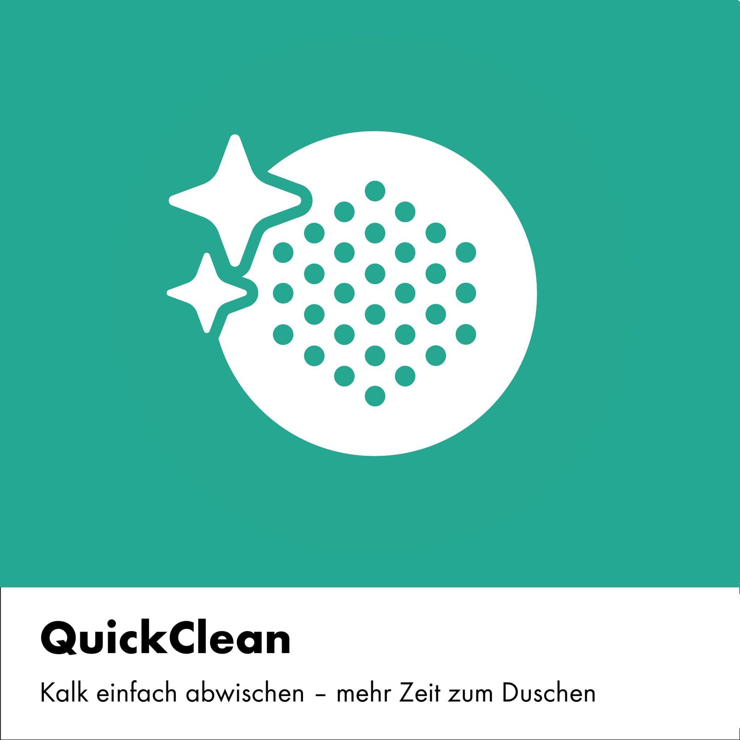 - Weniger Kalk – mehr Zeit zum Duschen: Ablagerungen an den Düsen werden automatisch ausgespült (QuickClean+)
