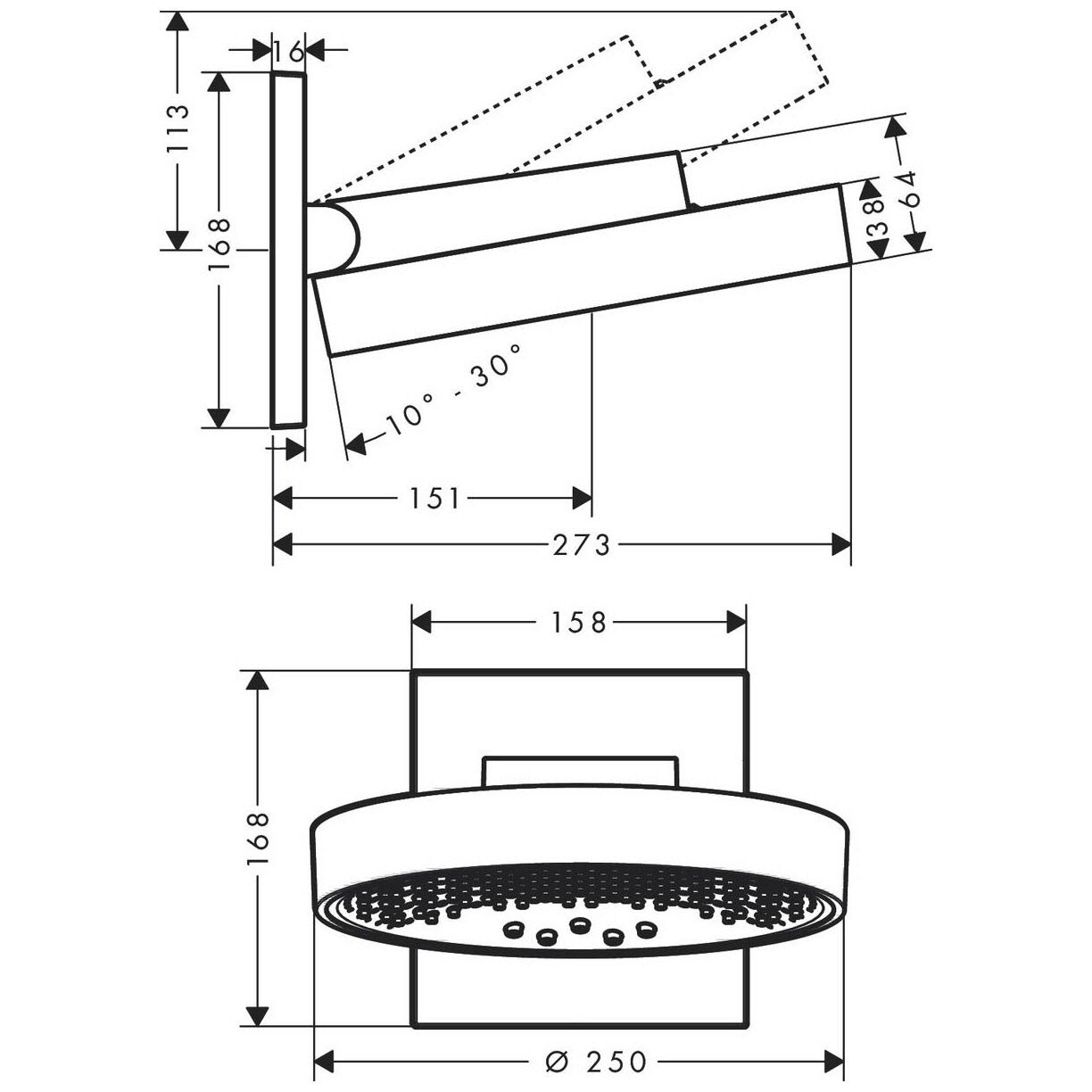 hansgrohe Rainfinity Kopfbrause 250 3jet EcoSmart mit Wandanschluss
