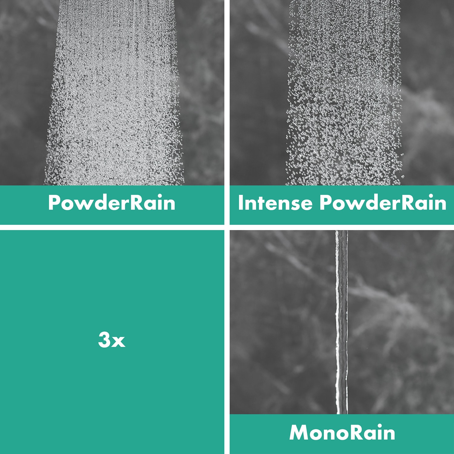 - Abwechslung durch drei Strahlarten: PowderRain, Intense PowderRain und fokussierter MonoRain