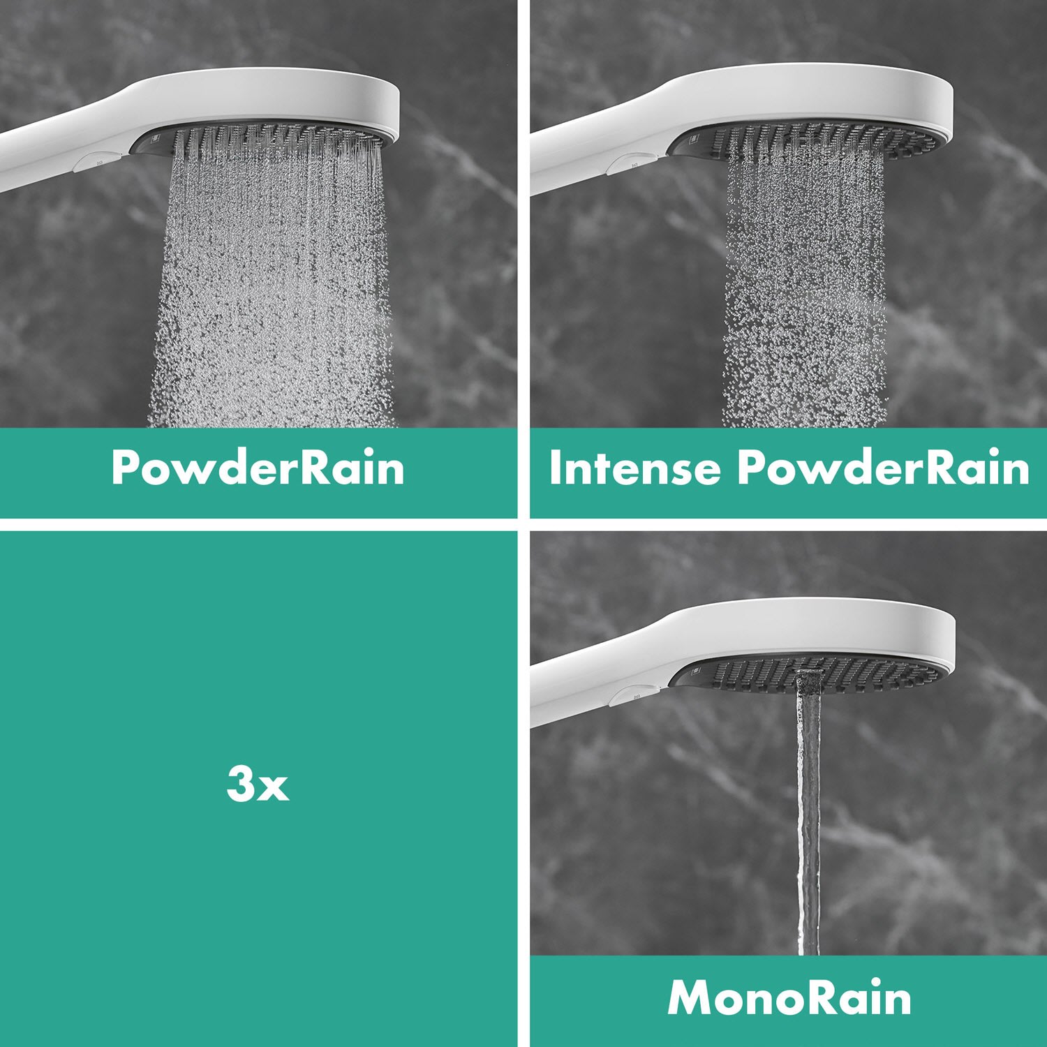 - Duschkopf inklusive: die Rainfinity 130 Handbrause verwöhnt mit 13 cm großem Duschkopf und drei Strahlarten