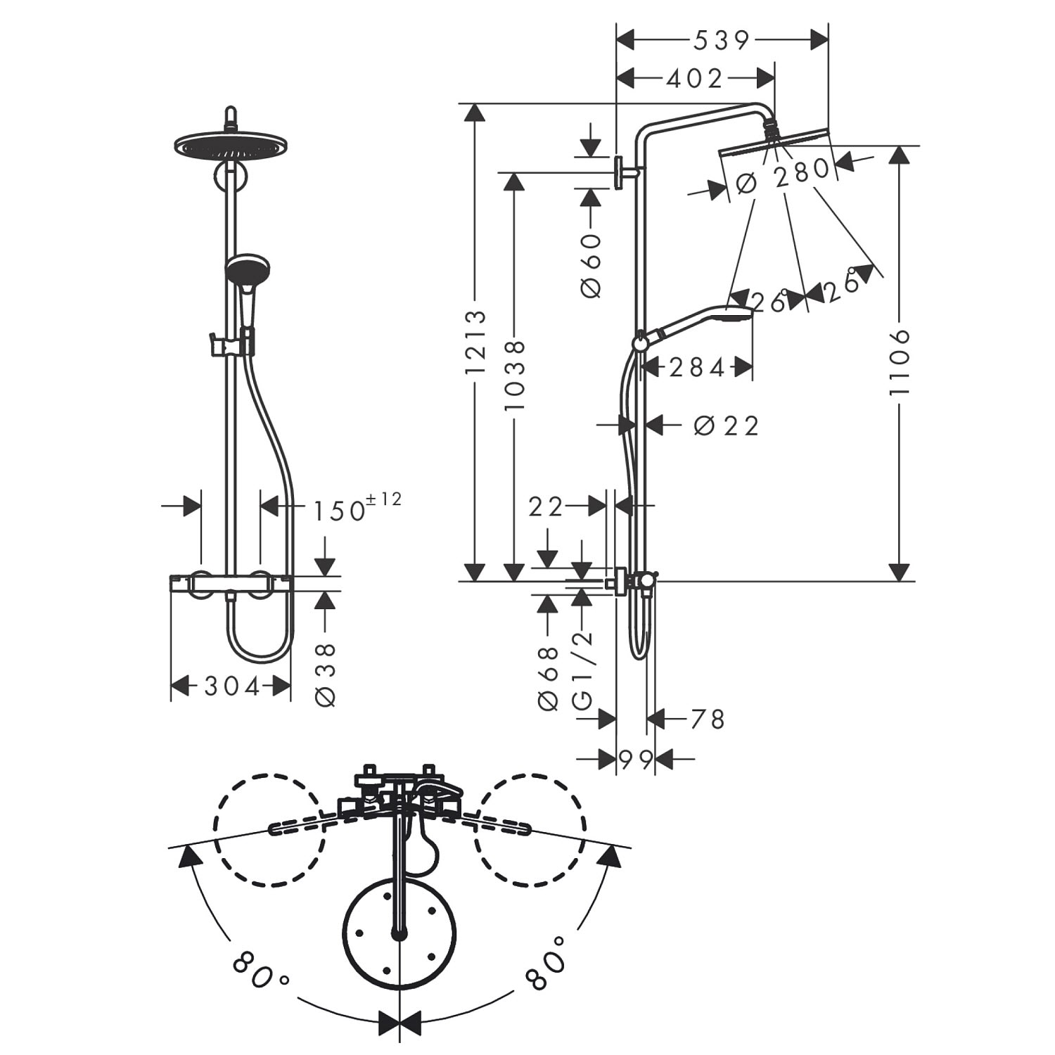 hansgrohe Croma Select S Showerpipe 280 1jet mit Thermostat und Handbrause, EcoSmart