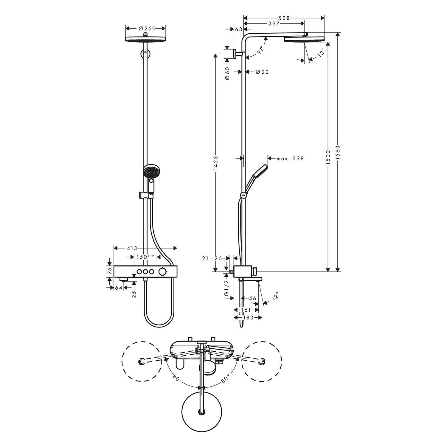 hansgrohe Pulsify Showerpipe 260 1 Strahlart, mit Wannenthermostat, mit Shower Tablet Select 400