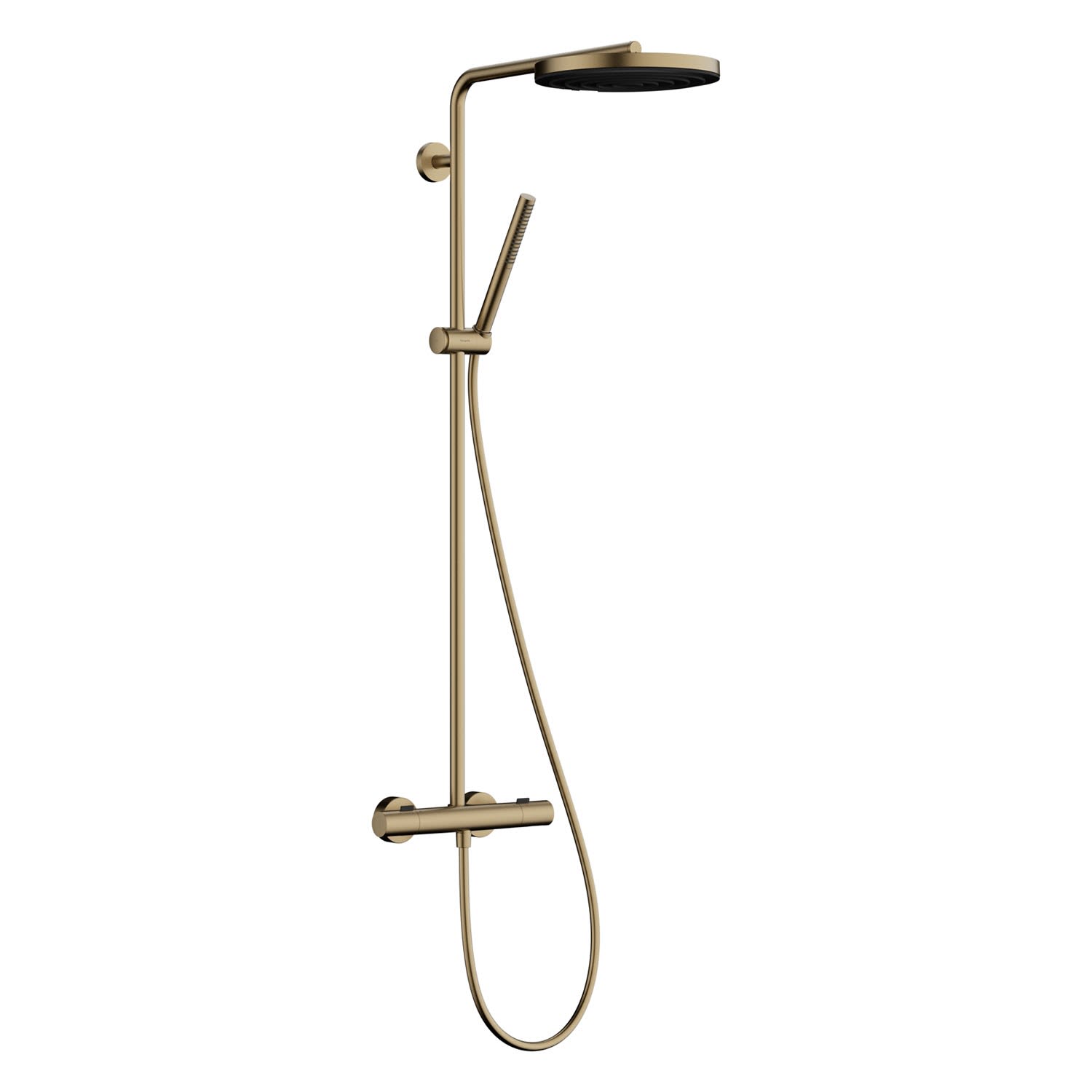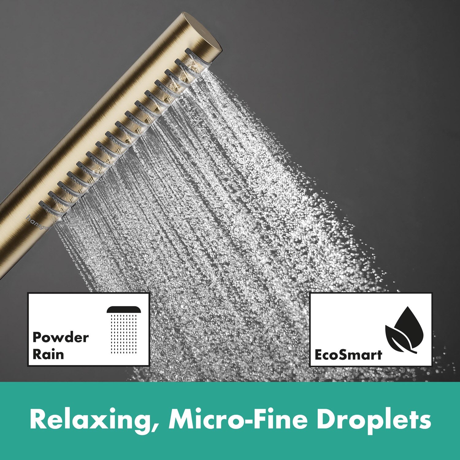 Pures Design – reines Duschvergnügen. hansgrohe Duschsystem in Brushed Bronze mit EcoSmart und PowderRain